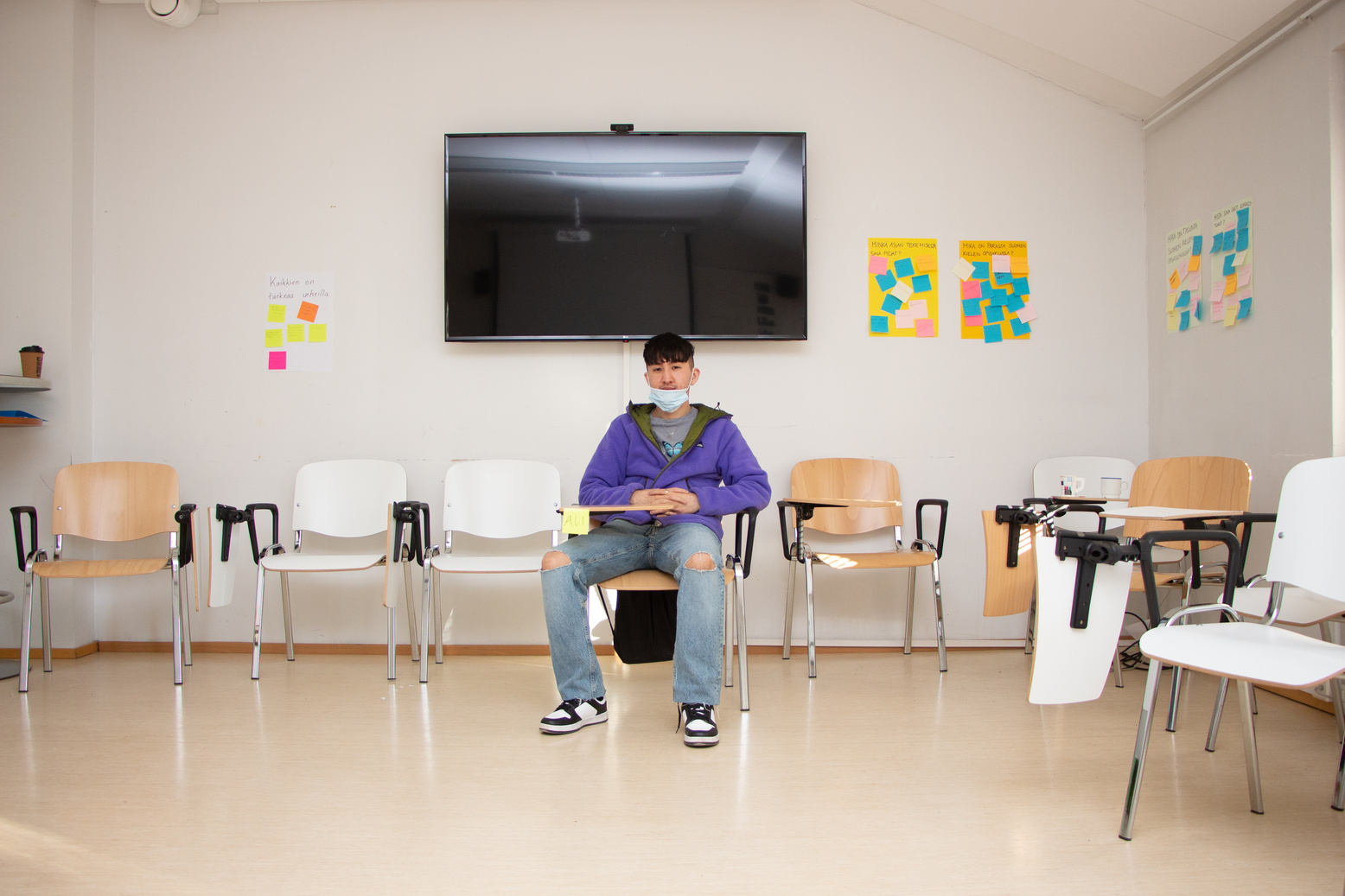 As an immigrant I feel always in transition. During Autumn 2021 and spring 2022 I took a Finnish language course where I shared with people from all over the world and different backgrounds. Our lives coincided in this one particular school in Helsinki. We are all in transition and in different ways we share aspects of our lives. Language bond us in manners we are not often aware off. Using a broken Finnish, I recorded interviews I had with them, I took portraits of my classmates and gave them a disposable camera so they could take pictures of whatever they found relevant in their life in Finland. I want to show the transition processes, how language transcends and we understand each other at a human level.