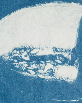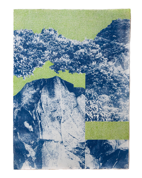 Un nuevo paisaje. Cyanotype with oil pastel. 56,5 x 77 cm