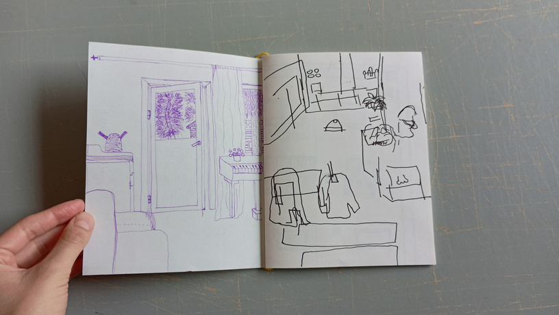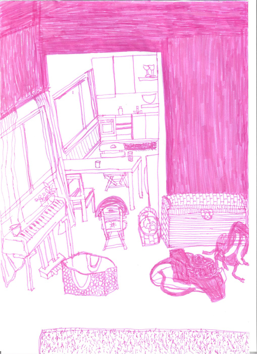 This is a branch of the project "Donde Estoy las Cosas Flotan". Here, I draw with my eyes closed different spaces of the place I call home. Afterwards I make a version of the same space with my eyes open and I color them also while seeing. By doing this, I experience from another sensorial perspective the space and place that I inhabit.